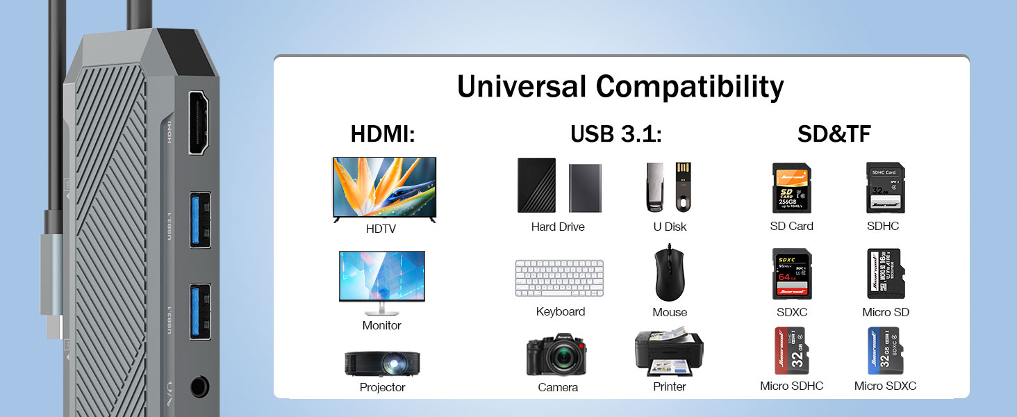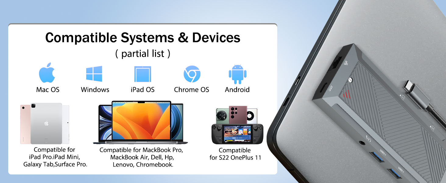 Sama ada digunakan untuk kerja profesional, pengeluaran kreatif, perjalanan perniagaan atau persediaan pejabat rumah, hab ini menawarkan cara yang praktikal dan cekap untuk memaksimumkan prestasi peranti moden.