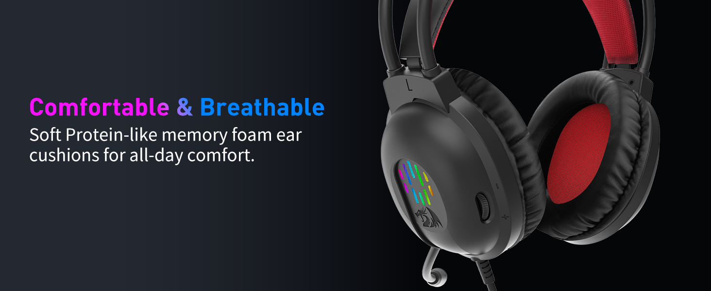 Ikat kepala boleh laras membolehkan pengguna menyesuaikan kesesuaian mengikut saiz kepala mereka, memastikan keselesaan maksimum. Sementara itu, kusyen telinga yang lembut membantu mengasingkan bunyi luaran dan mencipta pengalaman audio yang lebih mengasyikkan.