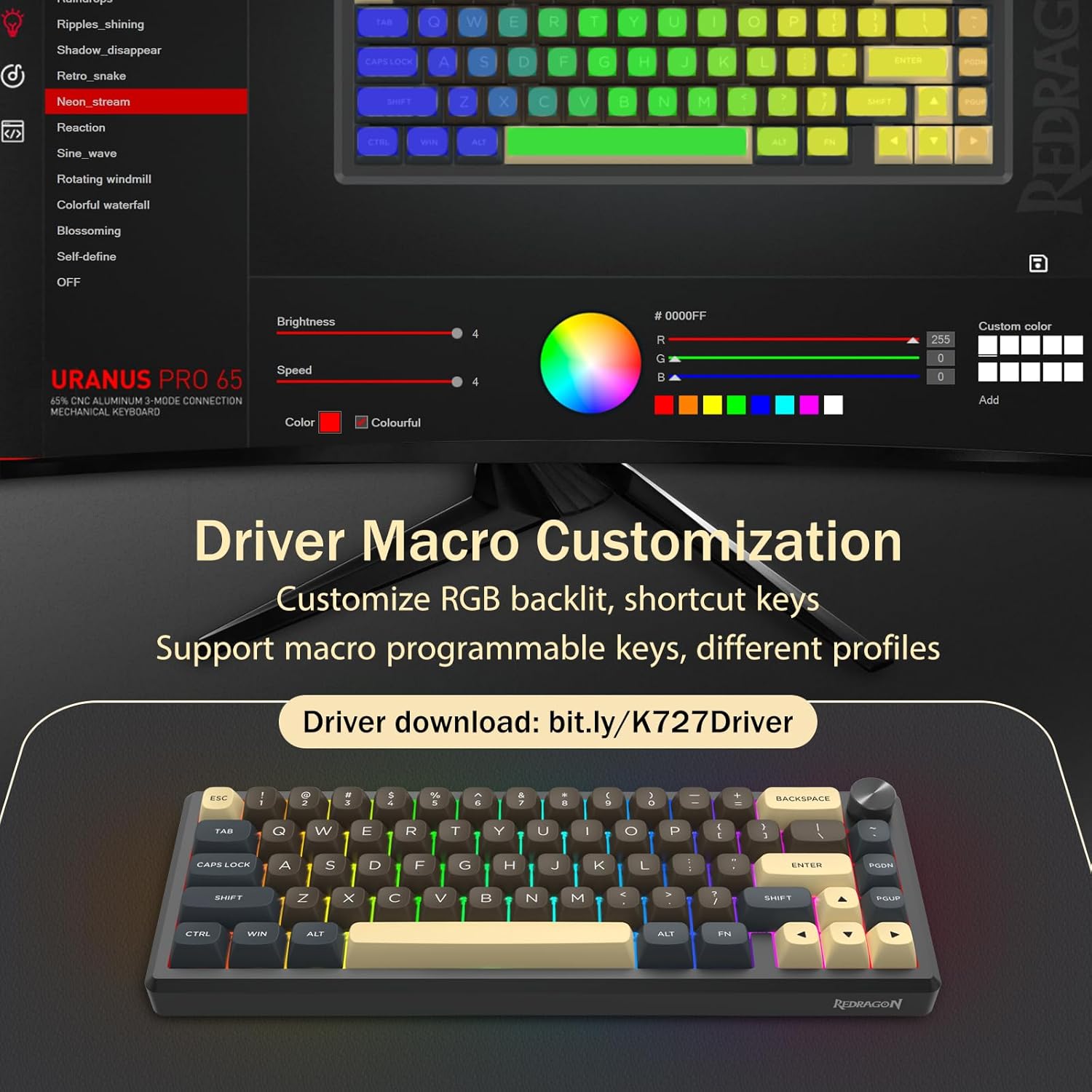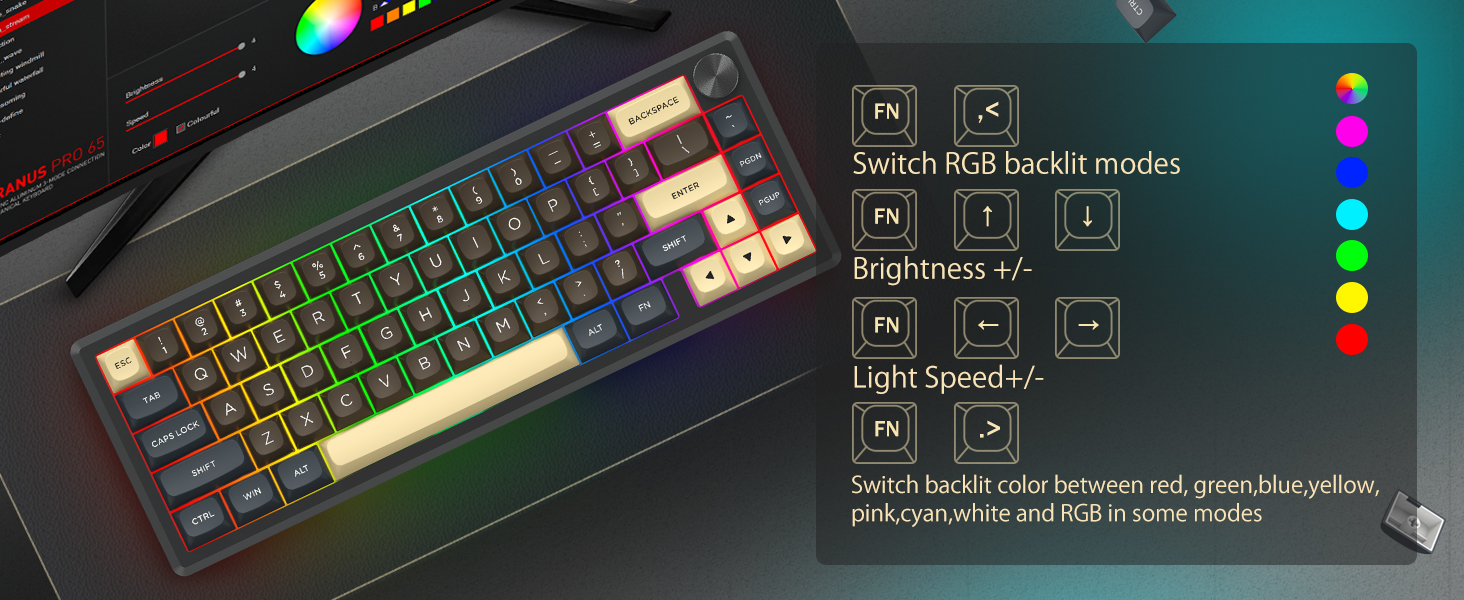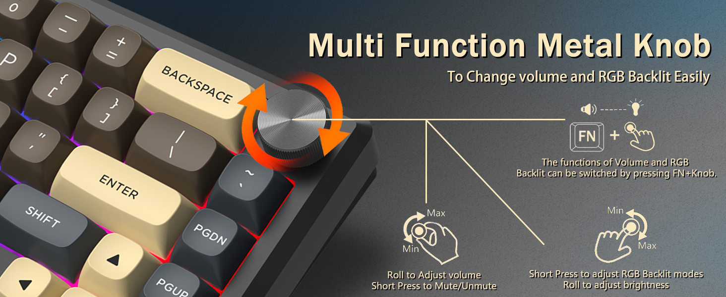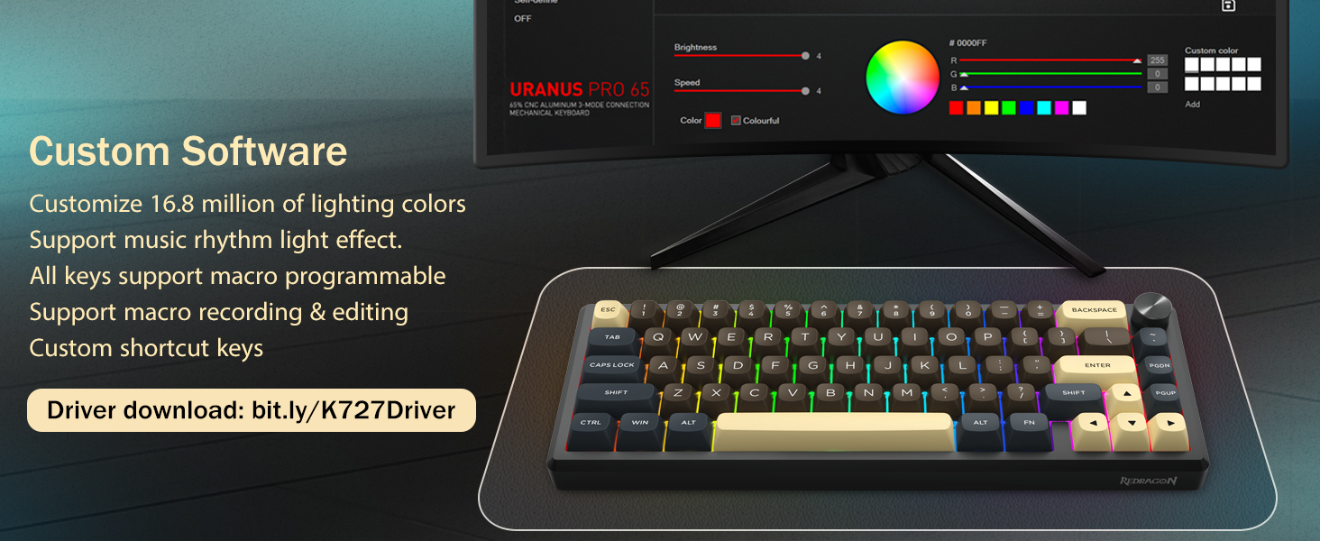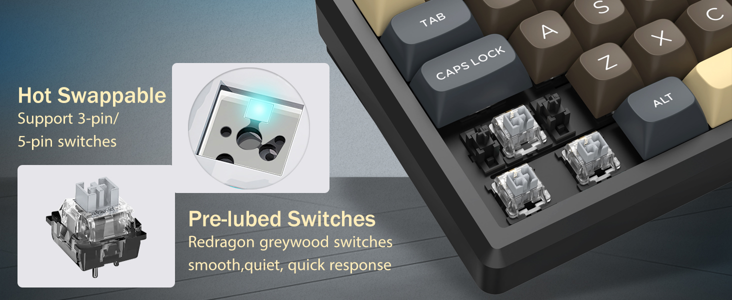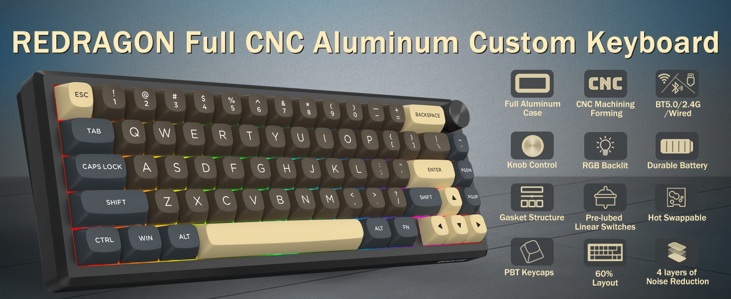 Dengan susun atur 60%, papan kekunci ini mengalih keluar kekunci yang tidak penting sambil mengekalkan fungsi teras melalui gabungan kekunci. Reka bentuk ini membantu mengurangkan kekacauan meja dan menyediakan lebih banyak ruang untuk pergerakan tetikus, menjadikannya sesuai untuk kedua-dua persekitaran permainan dan produktiviti.