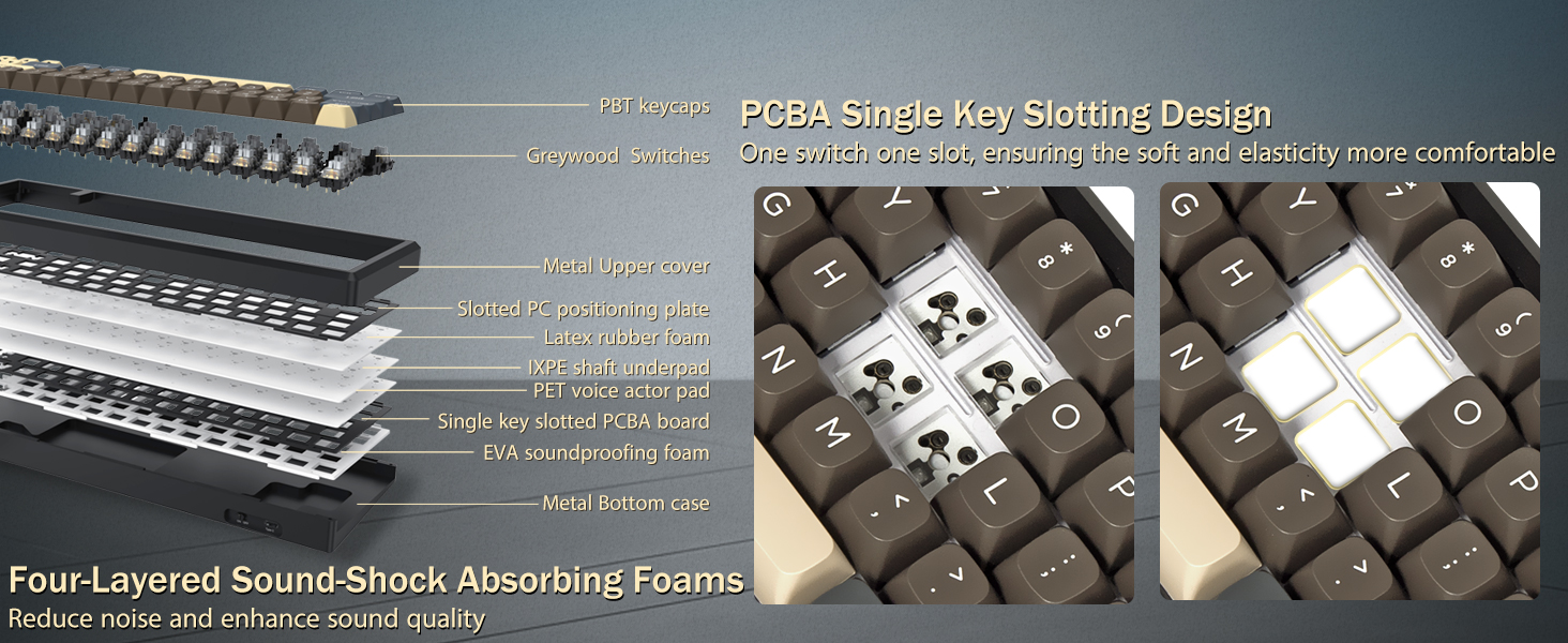 Dilengkapi dengan suis mekanikal, papan kekunci memberikan penggerakan yang konsisten dan maklum balas sentuhan. Ini menyokong penaipan yang tepat dan input yang boleh dipercayai untuk tugasan permainan dan kerja.