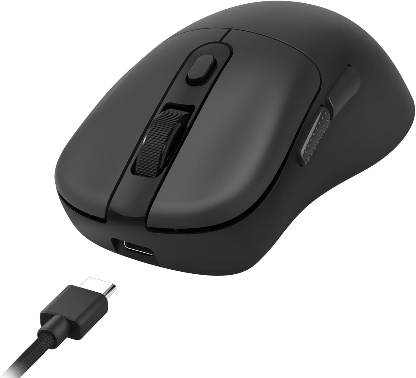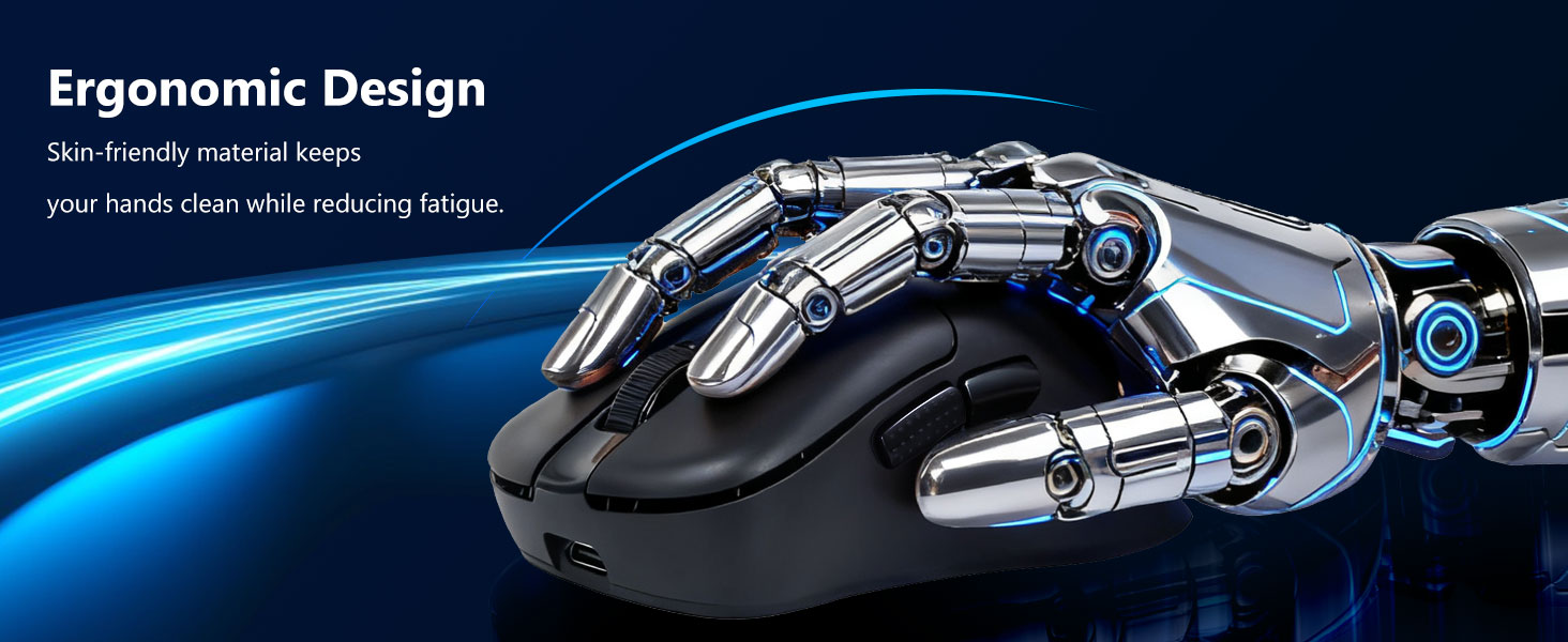 Tetikus dibentuk untuk menyokong kedudukan tangan semula jadi, menampung gaya cengkaman yang berbeza. Ini membantu mengurangkan keletihan semasa penggunaan berpanjangan.