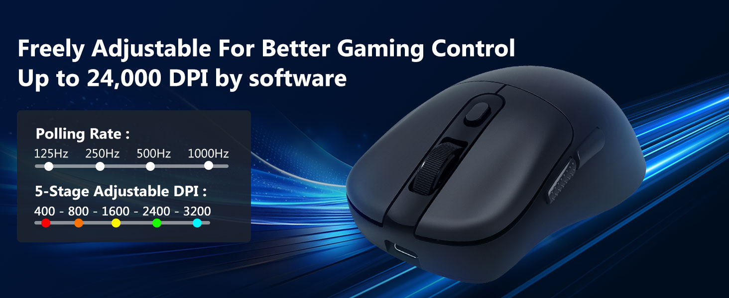 Tetikus dilengkapi dengan sensor optik berprestasi tinggi yang mampu mencapai sehingga 24,000 DPI. Ini membolehkan pengguna melaraskan tahap sensitiviti untuk tugasan yang berbeza, daripada kawalan kursor tepat kepada navigasi skrin pantas.