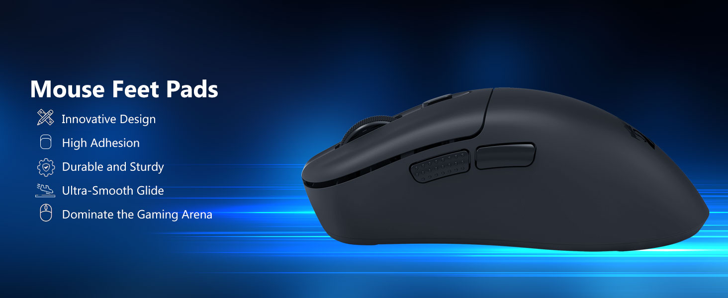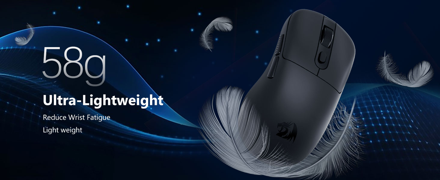 Tetikus dibentuk untuk menyokong kedudukan tangan semula jadi. Permukaannya memberikan cengkaman yang stabil, membenarkan kawalan yang tepat semasa kedua-dua pergerakan pantas dan tepat.