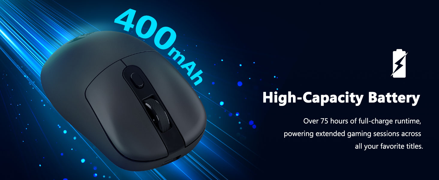 Mod wayarles 2.4GHz memastikan input yang stabil dan responsif, mengurangkan ketinggalan dan mengekalkan kawalan yang konsisten semasa aktiviti pantas.