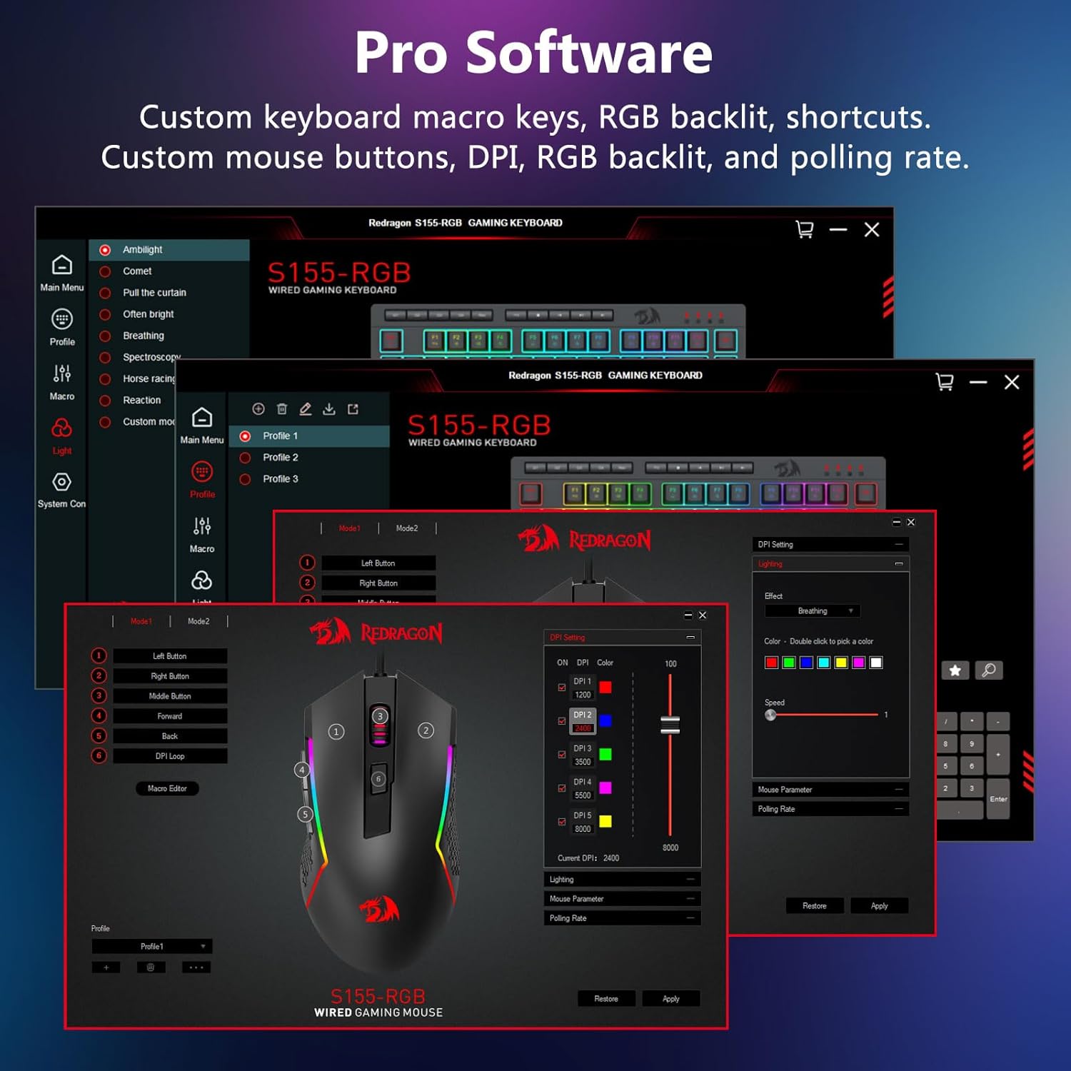 【Keserasian yang luas】Windwos 11, Windows 10, Windows 8, Windows 7, Windows Vista, atau Windows XP, Sokongan Papan Kekunci Mac OS Limited. Bekerja dengan baik dengan semua jenama komputer utama dan permainan PCs.Keyboard Perisian: bit.ly/s155-rgbkeyboard;