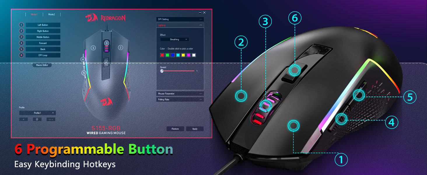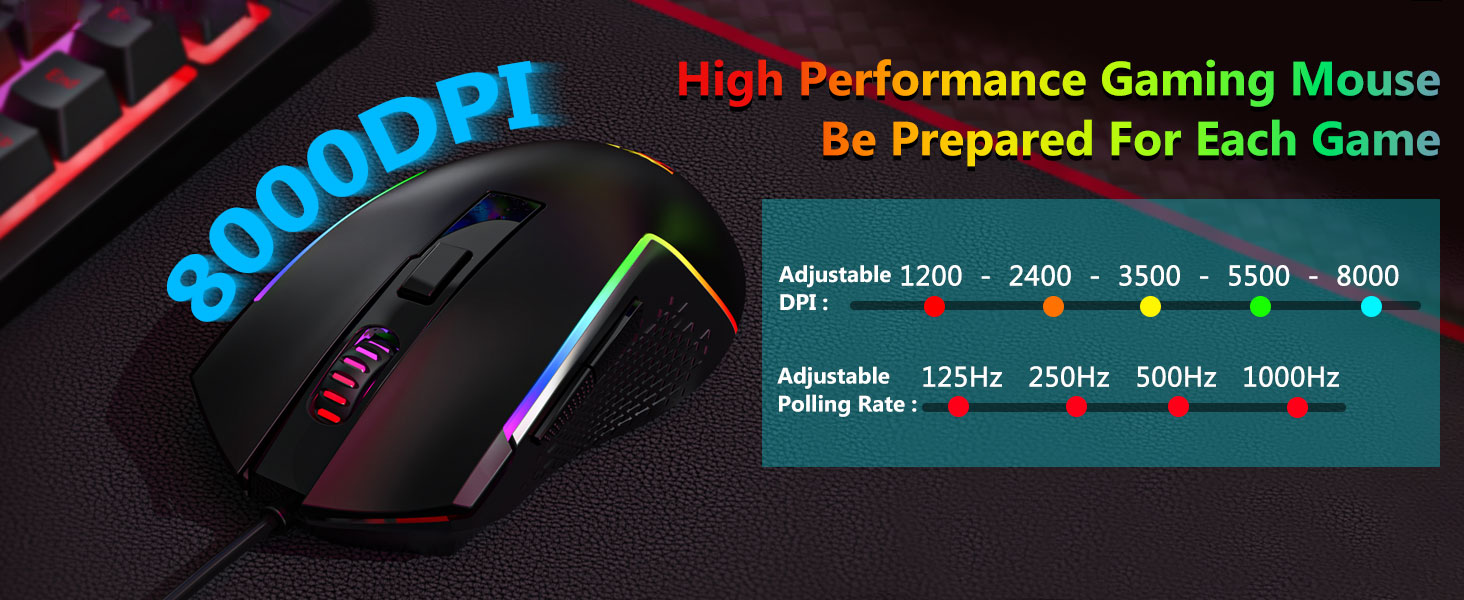 【Tetikus permainan profesional】Anda boleh menyesuaikan DPI dari 1200 hingga 8000 melalui butang DPI atau dari 100 hingga 8000 melalui pemacu perisian untuk memenuhi keperluan anda dengan mudah dalam permainan atau kerja. Jumlah 7 butang yang 6 boleh diprogramkan. Sensor ketepatan tinggi memberikan ketepatan yang tepat sementara suis mikro gred permainan memastikan panjang umur, ketahanan yang lebih besar, dan respons yang melampau, memberikan anda kelebihan yang lebih besar ke atas persaingan anda. (Perisian juga menyokong menyesuaikan kadar pengundian tetikus sehingga 1000Hz)