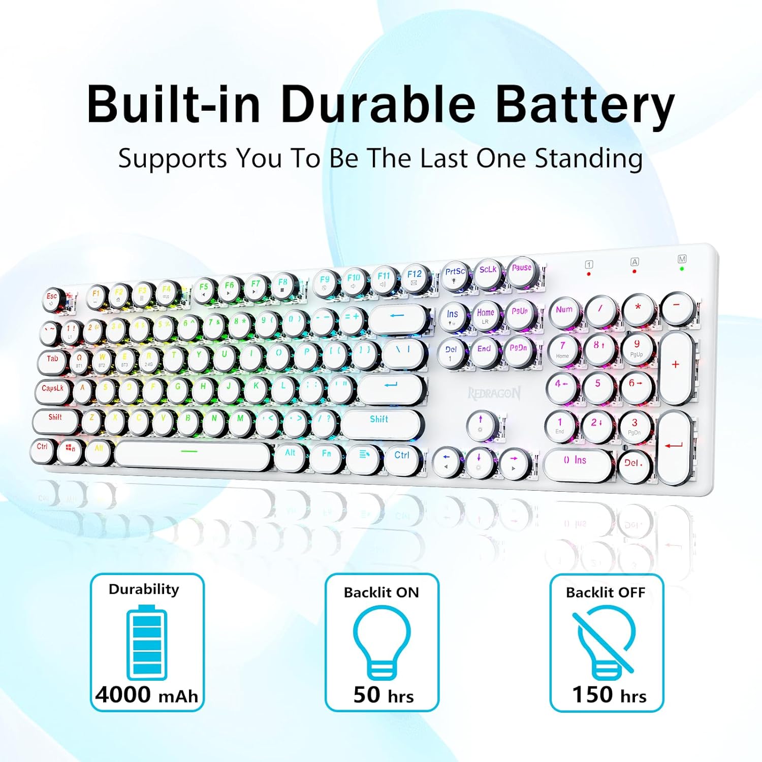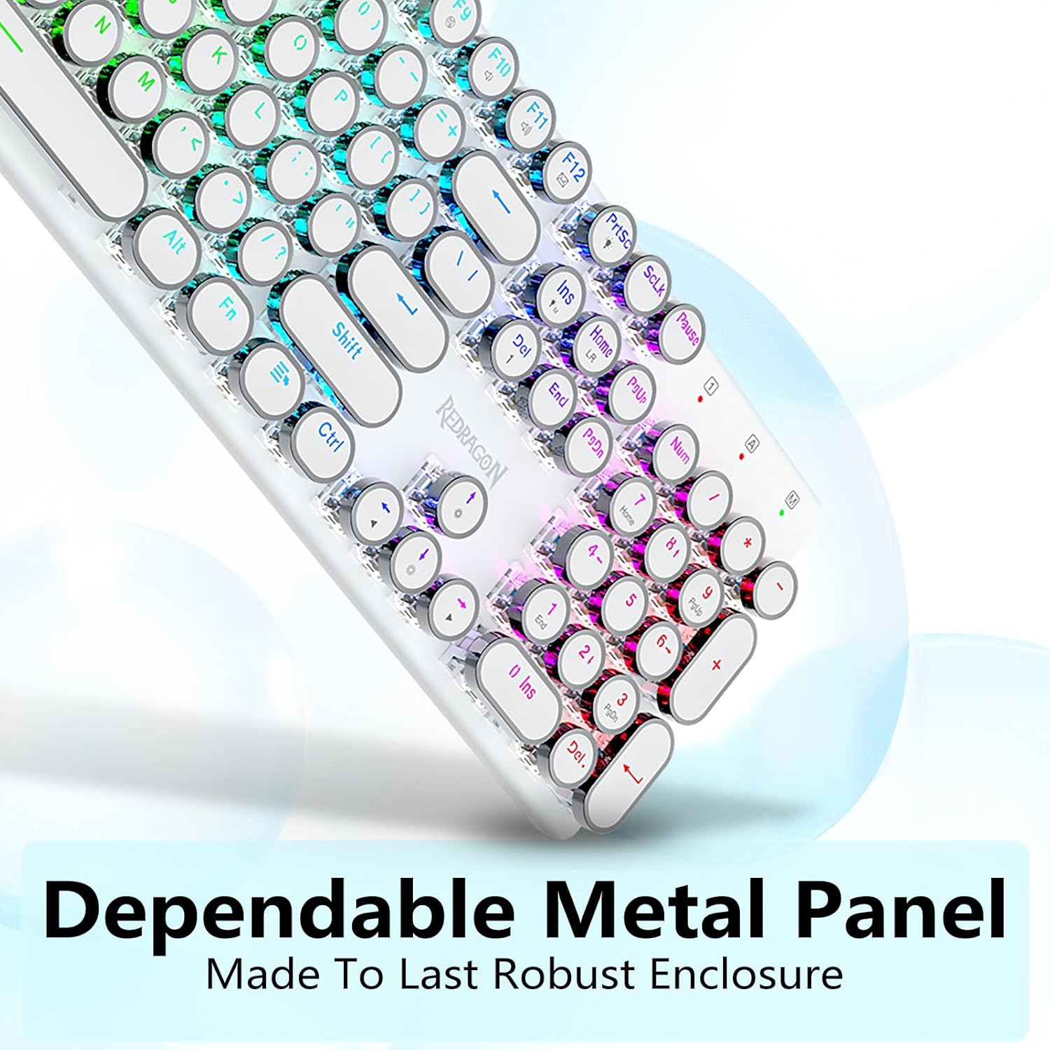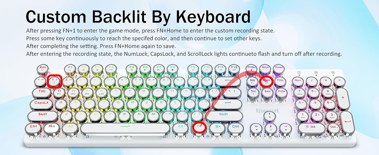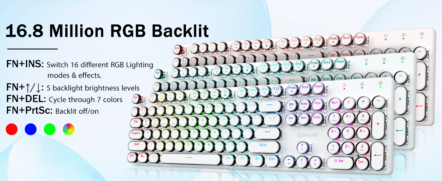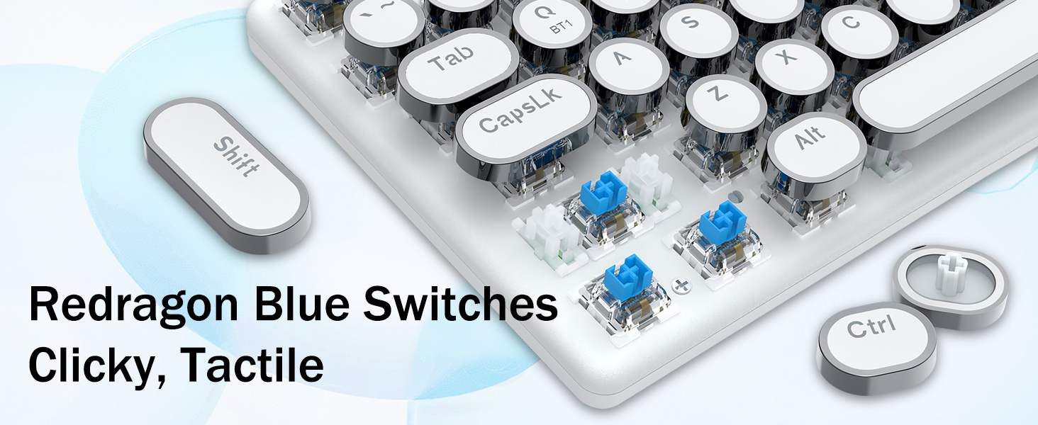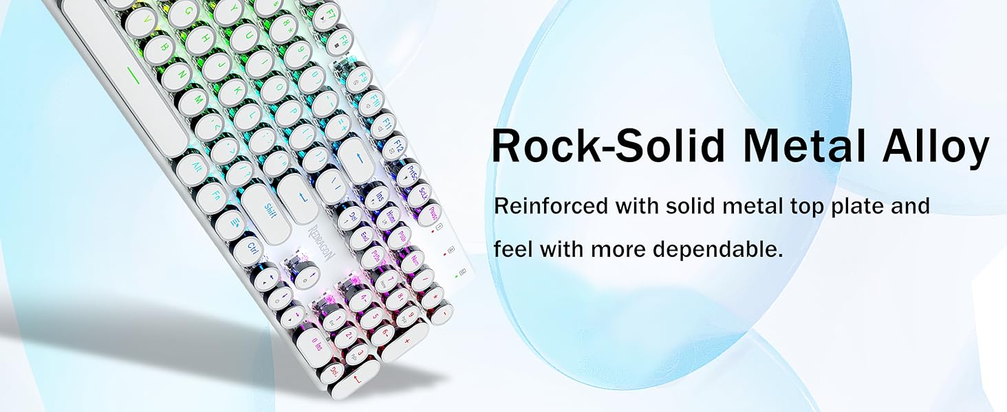 𝗥𝗲𝘁𝗿𝗼 𝗧𝘆𝗽𝗲𝘄𝗿𝗶𝘁𝗲𝗿 𝗦𝘁𝘆𝗹𝗲 𝘄𝗶𝘁𝗵 𝗠𝗲𝗰𝗵𝗮𝗻𝗶𝗰𝗮𝗹 𝗞𝗲𝘆𝘀- Redragon Switch Blue Mechanical menawarkan rintangan sederhana, maklum balas bunyi & sentuhan klik yang boleh didengar, menyediakan persekitaran dan prestasi permainan yang responsif dan tepat. Kekunci keyboard Steampunk Vintage kelihatan seperti mesin taip klasik, membawa anda rasa menaip yang selesa & sentuhan klik yang stabil.
