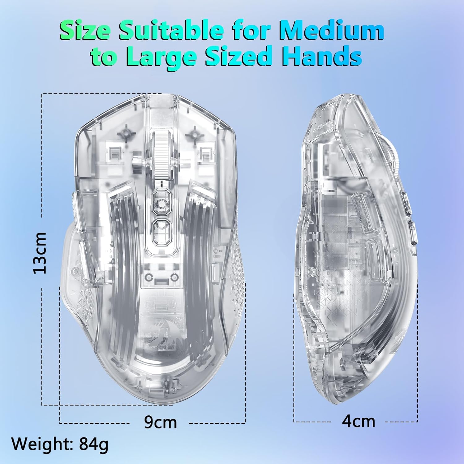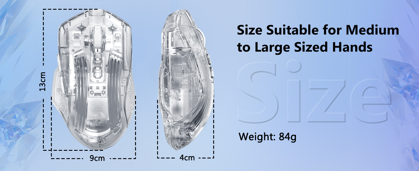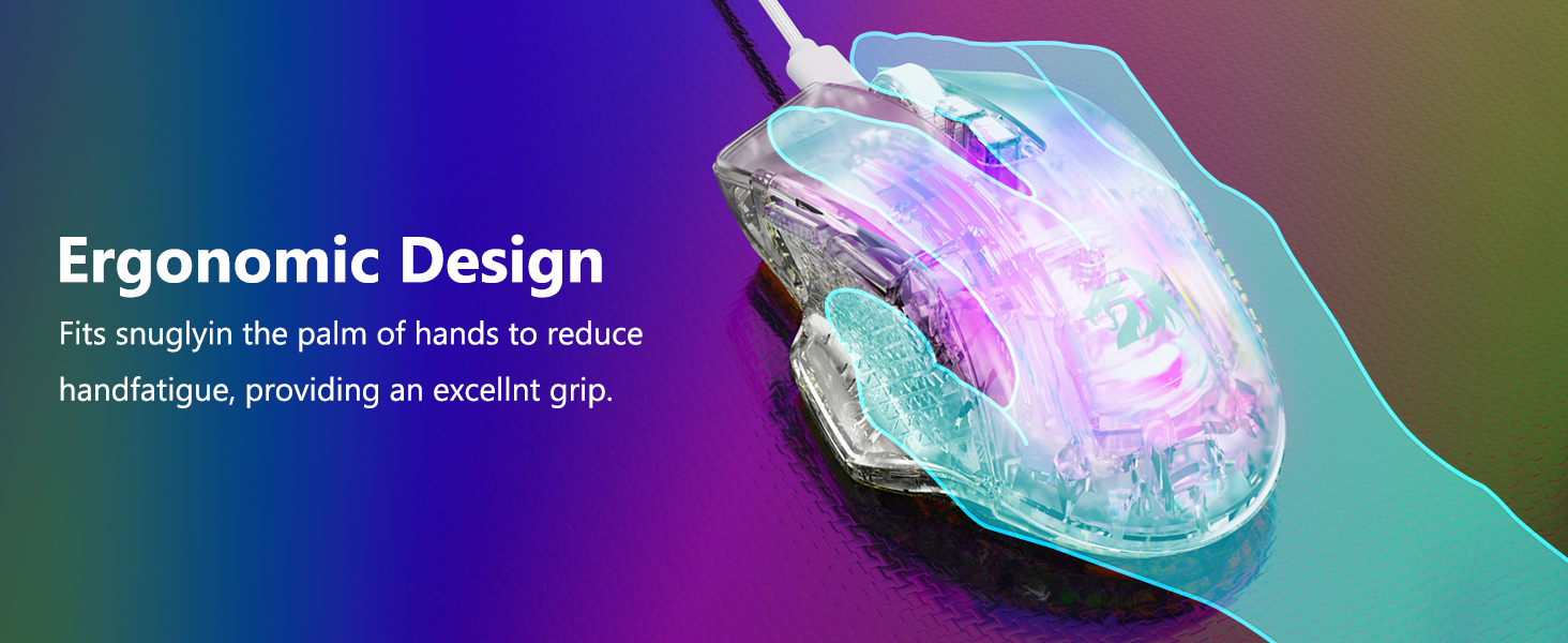Tetikus dibentuk supaya muat secara semula jadi di tangan, menyokong penggunaan lanjutan tanpa ketegangan yang berlebihan. Strukturnya membolehkan gaya cengkaman yang selesa, termasuk genggaman tapak tangan, cakar dan hujung jari.