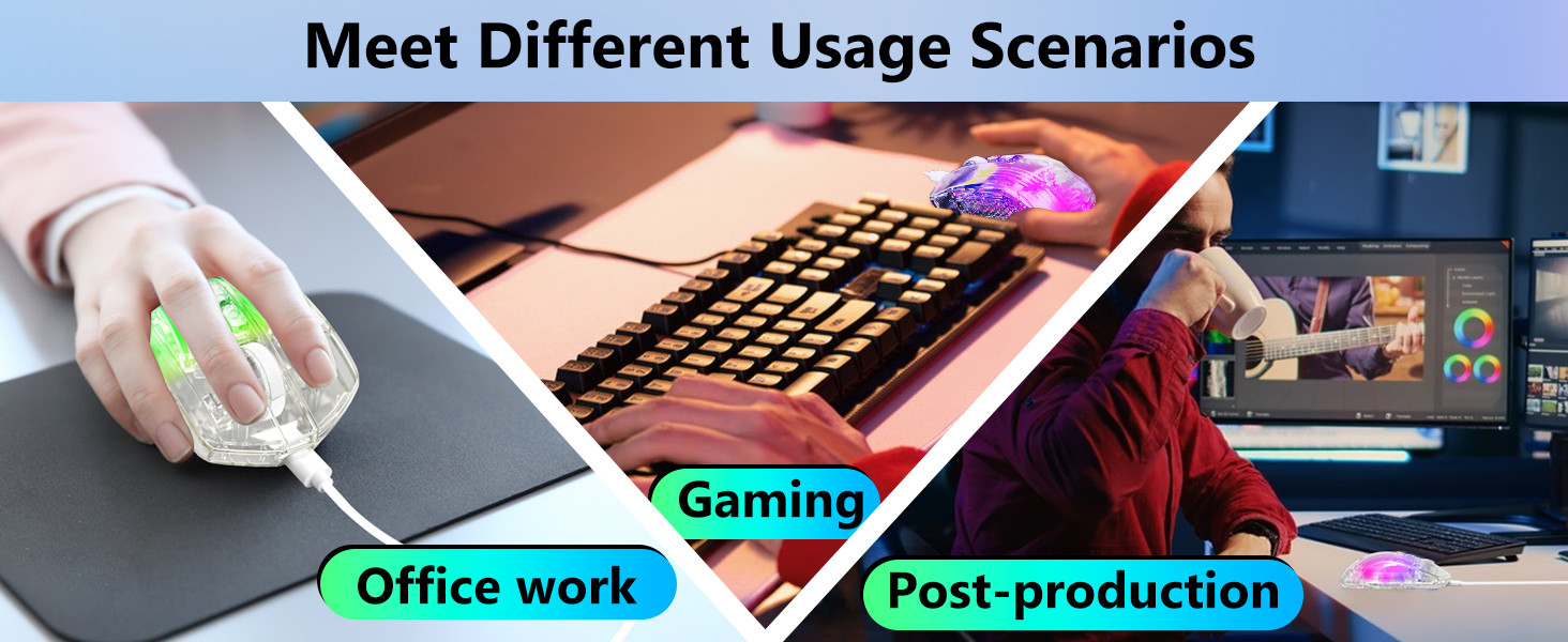 Selain permainan, tetikus berfungsi dengan baik dalam persekitaran pejabat, menyokong tugas seperti menyunting dokumen, menyemak imbas dan pengurusan data.