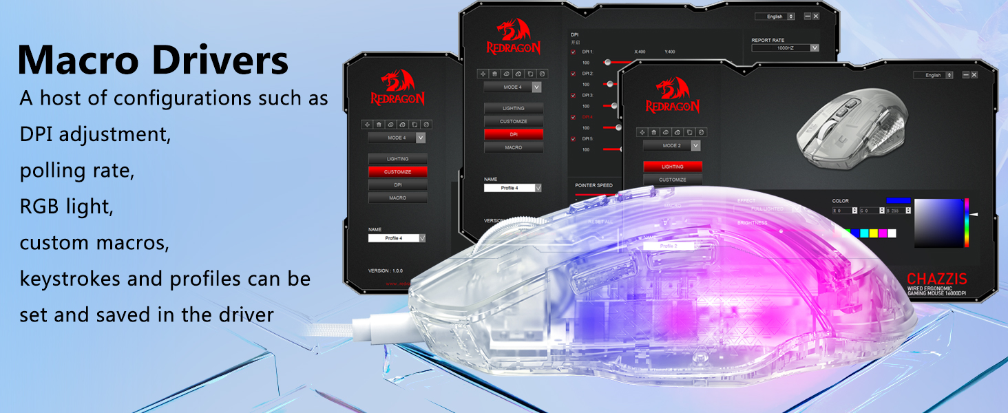 Tahap DPI boleh laras membenarkan penyesuaian berdasarkan keutamaan pengguna, menjadikannya sesuai untuk genre permainan dan aliran kerja yang berbeza.