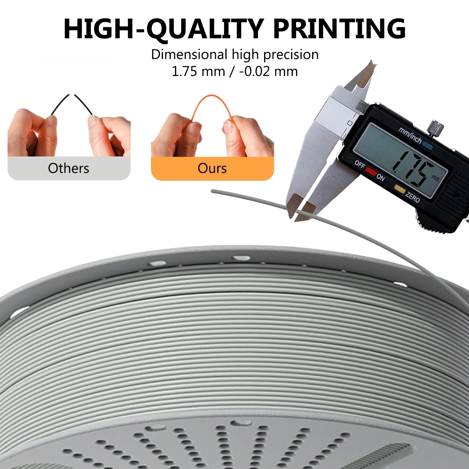 J: Untuk mengekalkan prestasi pencetakan yang optimum, Filamen Pencetak 3D PLA Putih Filamen PLA 1.75mm hendaklah disimpan dalam bekas yang kering dan bertutup dengan pek bahan pengering. PLA boleh menyerap lembapan dari udara, yang boleh menyebabkan masalah pencetakan seperti menggelegak atau penyemperitan yang tidak konsisten. Penyimpanan yang betul membantu mengekalkan integriti filamen dan memastikan hasil yang boleh dipercayai semasa pencetakan.